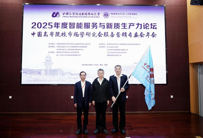 2025年10月26日,为期两天的中国高等院校市场学研究会服务营销专业委员会2025年度年会智能服务与新质生产力论坛在完成各项预定议程后,于湖北武汉中南财经政法大学圆满落下帷幕。本次盛会汇聚了来自全国百余所高校及业界的数百名专家学者,围绕数智时代服务营销的前沿理论与实践展开了深度对话与思想碰撞。