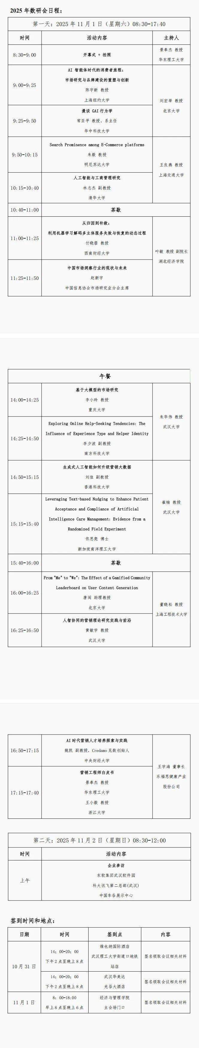 温馨提示:预定时请告知参2025年度“人工智能时代的市场研究与营销创新”会议并提供入住基本信息。 酒店有大巴车定时定点接送 ,10月31日下午酒店大堂均设有签到领材料处,11月 1号当天在主会场门口处设有签到处。
