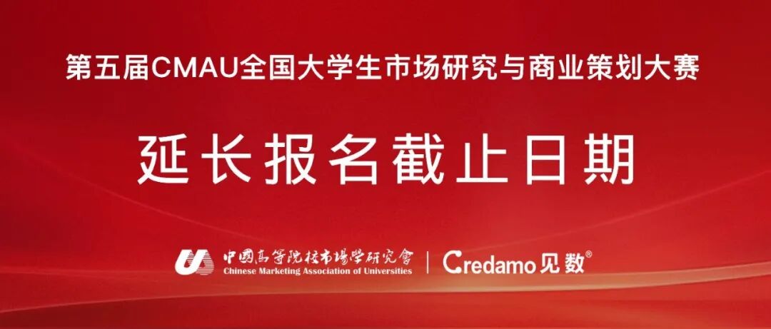 为了持续提升高校学生的市场研究与商业策划能力,为广大师生提供教育实践与技能锻炼的平台,由中国高等院校市场学研究会与Credamo见数联合主办的第五届CMAU全国大学生市场研究与商业策划大赛已于2025年12月正式启动。截至3月18日,来自31个省、自治区、直辖市的15500余名同学已成功报名。由于近期众多院校刚刚开学,不少师生反映未能及时报名,迫切希望延长截止时间。原定于3月22日结束的报名因此顺延。应广大师生要求,我们特意延长了报名期限,请有意参赛的同学务必抓住这最后的机会!